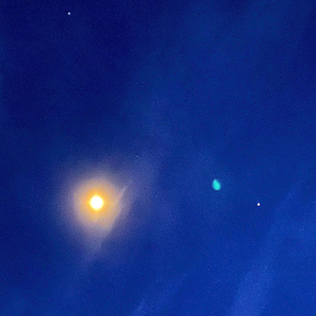 The moon and two planets in the early morning sky this morning. Not the best shot but it was beautiful.